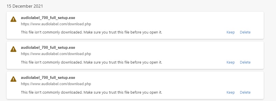 I have upgraded from v6 to v7. Paid my money, received an email with a link to your website for full version. Click on link for download. I get a message on my download manager along the lines that it is not a trusted file, tried it 3 or more times, see attached.