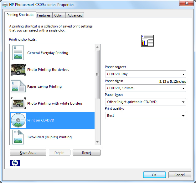 I have an HP Photosmart Premium C309a printer and keep trying to print on a Sony DVD with white face for image. I loaded the DVD onto slide in tray, dropped the CD/DVD tray down and inserted into the printer the slide in tray. I had prepared the image in Audio Label program. Then I pressed print and adjusted settings to reflect my HP model and CD/DVD tray as paper tray option. When all looked correct I hit print preview. Image displayed was correct, however it displayed on the lower half of what appears to be a possible 8 1/2" by 11" paper printout. When I hit print again, the printer locked up, asking me to raise the CD/DVD tray supports the CD/DVD slide in tray with the DVD that is used to prepare for the DVD printing. When I removed the slide in tray and lower the CD/DVD tray, the image then printed on paper.