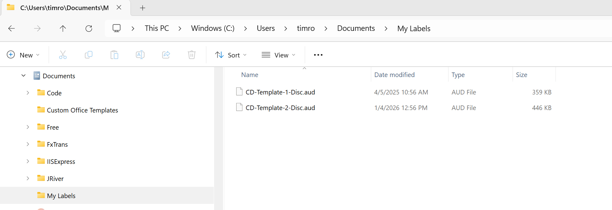When AudioLabel starts, some of the files in the “Document > My Labels” folder are loaded.
